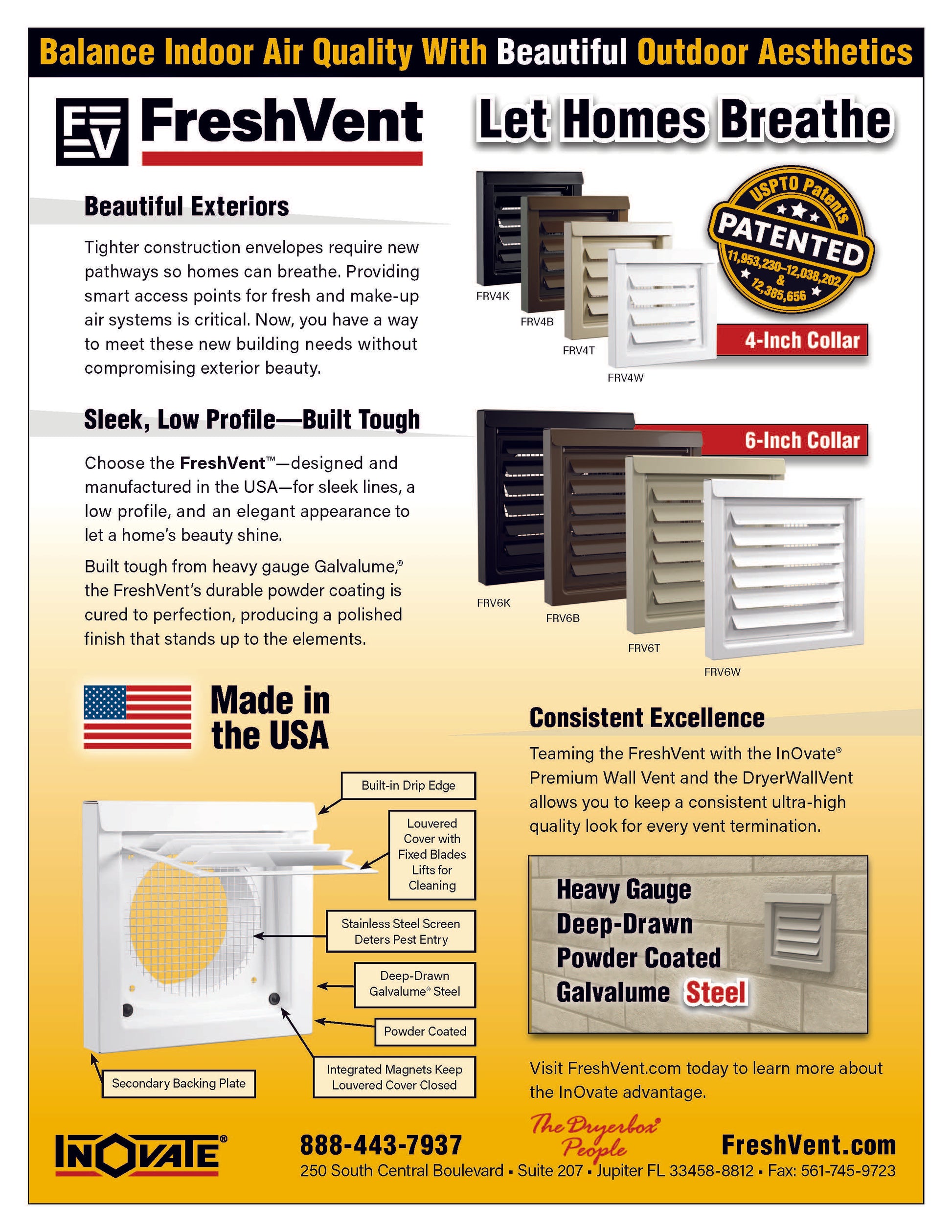 Manufactured in the USA, this innovative vent matches the premium look and performance of other InOvate ventilation solutions, including DryerWallVent™ and Premium WallVent™, ensuring a cohesive, high-end appearance across your home's exterior.